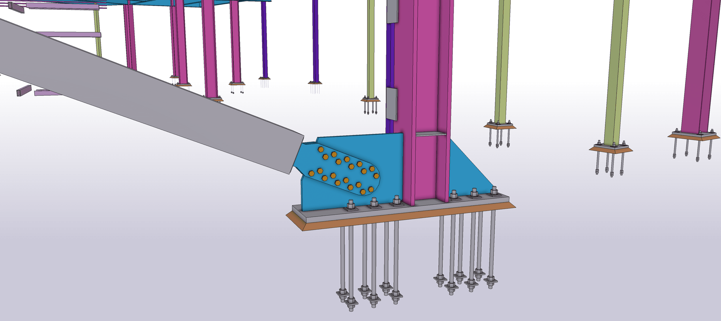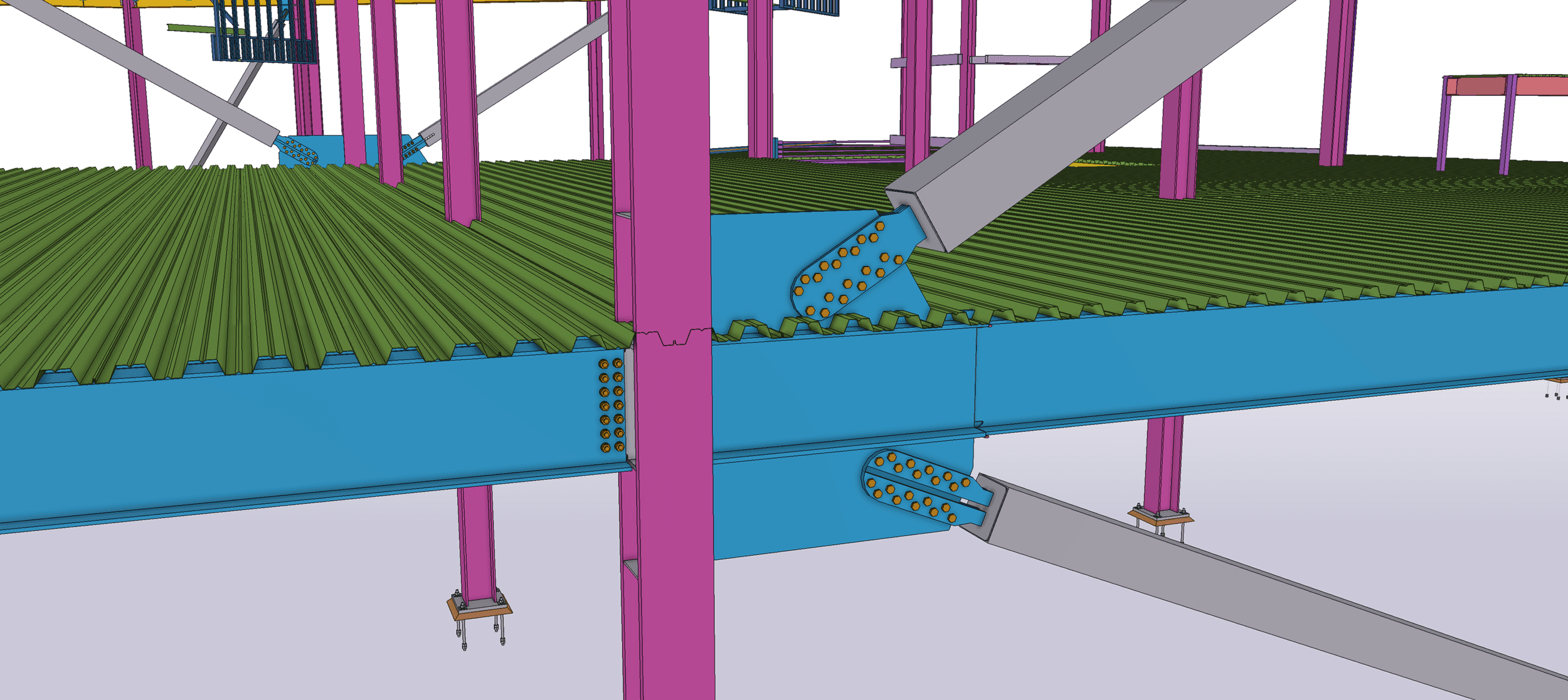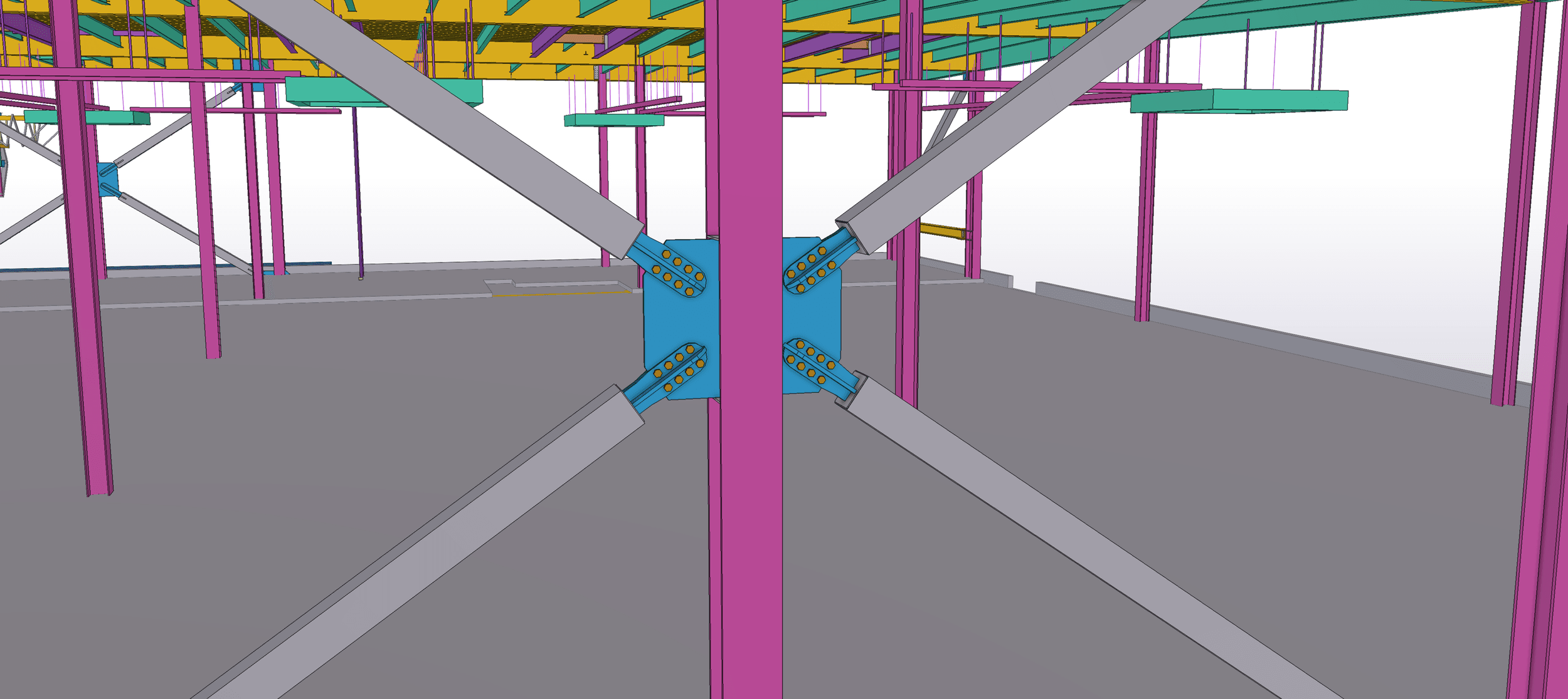 The new casino building spans a 350 ft.-by-165 ft. footprint with a 30-ft.-tall, single-story space for the main casino gaming area. Its roof framing features non-composite structural steel and is laterally supported with a combination of special concrete shear walls and buckling-restrained braces for seismic stability.